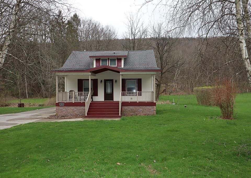 Beautiful older home which has been completely redesigned and remodeled. This is a top to bottom remodel; all walls, flooring, windows, kitchen, bathrooms, roof, siding, furnace, electric and plumbing are new. Water conditioning system. Nice open concept, yet private, cozy space has been worked into the floor plan, as was added storage. Bright sunroom. High speed internet available. House is situated on 25 acres, in a great country setting, yet just a few miles from Rt. 220 in Milan. Rear patio from which to enjoy the views. Large barn for storage. Concrete driveway.