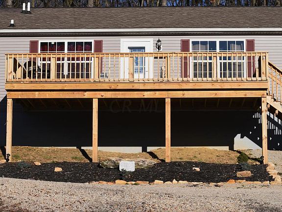 Immaculate 4 bedroom home sitting on over 3.5 acres in the Licking Valley school district! This home offers a single story floor plan with over 2200 square ft of living space. This home has many updates including a new central air system 2017 and newly built spacious front deck. Water and sewer pre-plumbed for your garage site! Come and see the view from the front deck of your new home on the hillside.