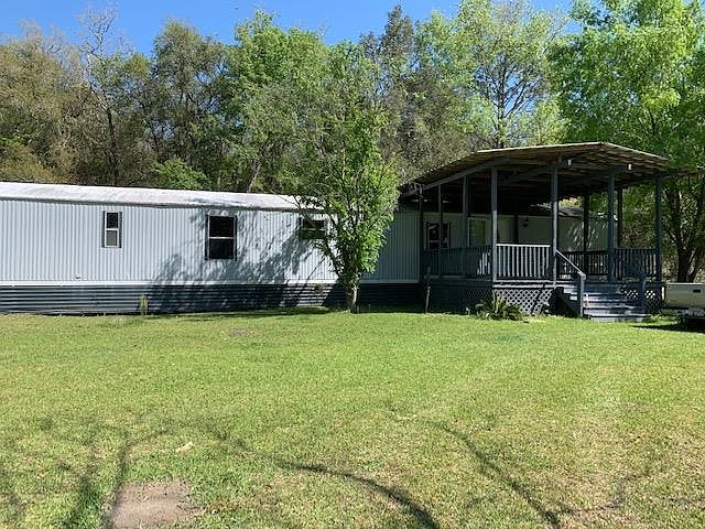 Here's an older mobile home, but solid. Inviting front porch leads to living room with carpet. Open plan with eat-in kitchen and oven/range and refrigerator. Master bedroom with carpet and master bath with vinyl flooring. Walk-in closet. Additional bedrooms with carpet. Guest bath with tub/shower combo. Laundry area. Central a/c in 2015. Very nice property. NOTE: Per tax record property is 1.5 ac, and seller not sure if 1.5+/- ac; no well on property so listing price is based on that...call today...