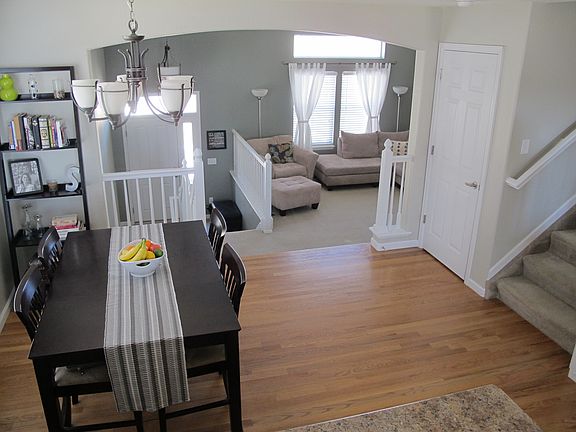 You will love this charming 3 bedroom townhome with it's wrap around porch, newly landscaped front yard and mountain views. Eat-in kitchen w/ 42 in cabinets, upgraded appliances, and hard wood floors overlooks cozy living room with fireplace. Upgraded lighting throughout. Fronts to open space. Within walking distance of parks and community pool. End unit. 2 car garage.