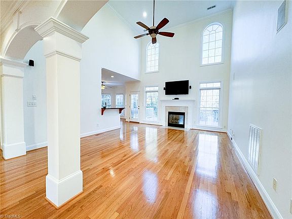 Welcome to your new home in Greenbrier Farm, featuring 5 bedrooms, 4.5 baths, elegant wood flooring, heavy moldings, and a grand entry for a touch of elegance. The open plan offers a spacious kitchen with an island and stainless-steel appliances, adjacent to a breakfast nook and a two-story family room. The main level master suite includes a bath with a jetted tub. Upstairs, three additional bedrooms and a bonus room that could serve as a 6th bedroom. The finished walk-out basement includes a large bedroom, full bath, living area, and a kitchenette with a sink & space for a refrigerator. For additional storage, there’s a walk-in attic and ample basement space. A main level double garage & circular driveway enhance curb appeal. Located near schools, parks, shopping, and dining, this home offers suburban peace with city convenience. Community amenities like a pool, tennis courts, playground, clubhouse & walking trails enrich the living experience, making it an ideal family home.