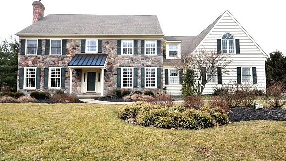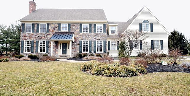 Designed for joyful living this custom built stone and cedar home includes a beautifully crafted finished basement with half bath and custom wet bar, private Aqua Sun pool, 3 car garage and updated kitchen and baths. A welcoming 2 story center hall foyer with turned staircase is open on the left to the formal living room w/FP and extends to a private rear study. On the right, French doors open to the formal dining room. The updated kitchen features gas cooking, granite countertops, designer tile backsplash and overlooks the family room with floor to ceiling stone fireplace. All rooms are accented by detailed moldings, transoms and hardwood floors. Upstairs are 4 generously sized bedrooms plus a magnificient master suite w/cc ceiling, walk-in closets and sitting area. Outside, there are 2 covered decks, secluded pool area and professionally landscaped gardens. Great location near Rt 202, 611 and 413. Meticulously maintained. More pictures coming.