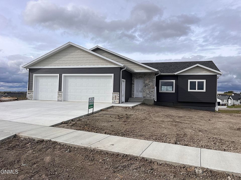 Welcome to the Beautiful Silver Ranch Development. This ranch style home, with a walkout basement, features 3 bedrooms and 2 bathrooms on the main level. The kitchen has custom cabinets with soft close drawers and doors, upgraded appliances, Quartz countertop's and tiled backsplash. The master suite has a walk in closet and a full ensuite bathroom. Both bathrooms have custom cabinets with soft close drawers and doors as well as quartz countertops. The basement is unfinished but set up for 3 more bedrooms with a large bathroom, laundry room and a large family room space with a patio door leading out to a concrete patio. Exterior of the home features LP Smart Siding, Vinyl and Stone on the front of the home and vinyl on the remainder. Contact your Realtor today for a private showing. Taxes and specials are incomplete, buyer and buyers agent to verify. Seller is a licensed Realtor in North Dakota.