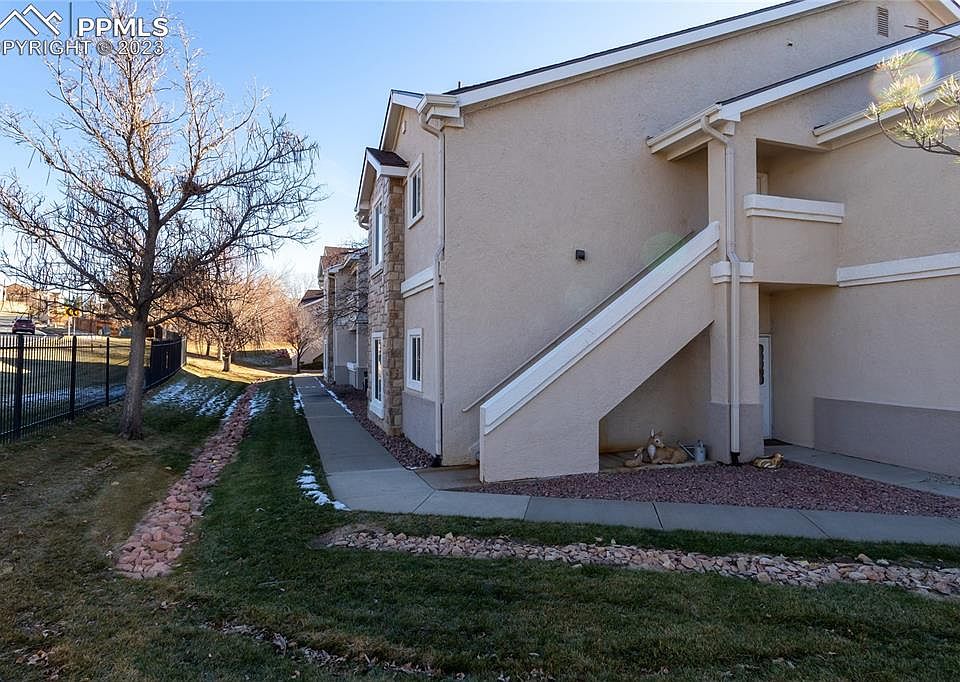 DETACHED GARAGE WITH SEPARATE ASSIGNED PARKING SPOT NEAR UNIT, GATED COMMUNITY WITH ELECTRIC SECURITY GATE AND SECURITY PATROLS, GREAT ROOM WITH VAULTED CEILINGS ONLY AVAILABLE IN UPPER-LEVEL UNITS PROVIDING INCREASED SECURITY, EATING SPACE PERFECTLY LOCATED OFF THE LIVING/KITCHEN AREA, OPEN WILSONART DURABLE LAMINATE COUNTER/BAR INSURES EVERYONE IS INCLUDED IN THE CONVERSATIONS, FLOORING IS CARPET AND DURABLE TILE IN ENTRYWAY AND BATHS, KITCHEN FLOORING IS A WATERPROOF, PET PROOF CORETEC MATERIAL, RECENTLY UPGRADED TOP OF THE LINE CENTRAL AIR, WONDERFUL CLUBHOUSE WITH POOL, SPA, FULL KITCHEN, MINI-THEATER ROOM, EXERCISE ROOM, AND TENNIS COURTS, NEW STAINLESS STEEL DISHWASHER, STOVE AND MICROWAVE, UPGRADED REFRIGERATOR AND DISPOSAL WITH DRYER AND FRONT LOADING WASHER INCLUDED, LARGE MASTER BEDROOM (ONE OF THREE) WITH WALK-IN CLOSET AND ROMAN STYLE TUB, PRIVATE COVERED BALCONY WITH STORAGE CLOSET, DEVELOPMENT ADJACENT TO LARGE CHEYENNE MEADOWS PARK, UNIT IS FIRST BUILDING TO THE LEFT AS YOU ENTER THE GATE, ASSIGNED PARKING IS SPACE #4, IDEAL LOCATION BETWEEN I-25 AND HWY 115 WITH EASY ACCESS TO FT CARSON, NORAD AND DOWNTOWN, GARAGE AND CONDO ARE SEPARATE PROPERTIES AND CAN BE SOLD SEPARATELY