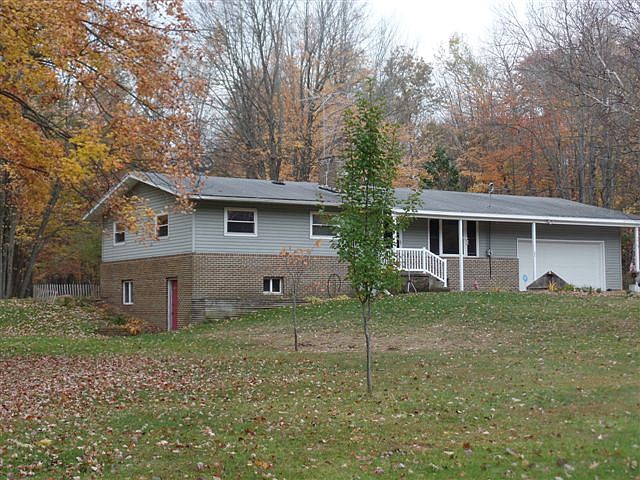 Very cool country location...This 3 bedroom Brick Ranch home is situated on 18.51 wooded acres in Mills Township. Open floor plan is perfect for the active family and entertaining with a family sized living room and eat in kitchen area. The full walk out basement is finished and centers around a 22 x 28 family room with custom bar, wood burning fireplace and also features a 3 piece bath. Covered Deck and Patio. 2 1/2 car garage is attached. Central air. Home warranty