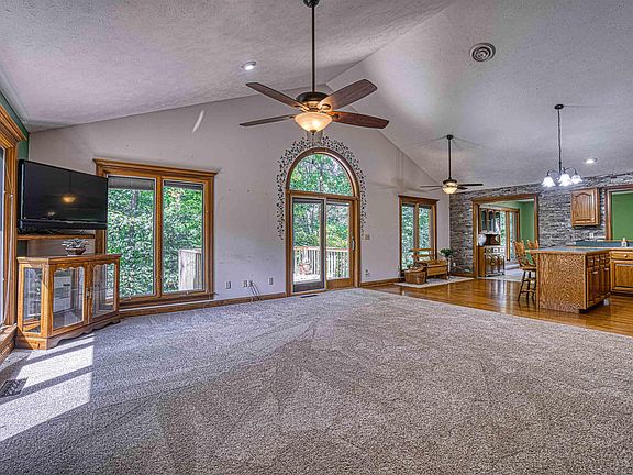 Private lake access & a lake view with open spacious floor plan & lots of natural light from large, floor to ceiling Pella windows with built-in blinds across the front & side of the house for an amazing view. From the Overlook upstairs you can look down and see the painted details surrounding the arch window & double glass door leading out to one of the decks surrounded by tall trees. Another deck off the large office/sunroom leads out to an area with a vinyl coated chain length for pets or children's playground. This 3 bedroom home has 2 Master bedrooms, one on the main floor & one upstairs. Full walkout basement with lots of storage. This wonderful home is located in the upscale, casual neighborhood of Blackford Lake Estates. Includes all Kitchen appliances that are top of the line GE Slate Stainless. There is a 30 x 40 Pole Barn with electricity. Home Warranty provided.