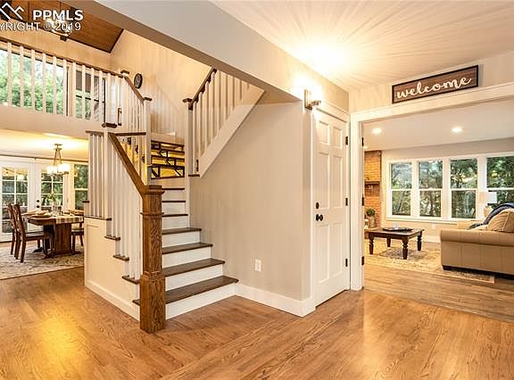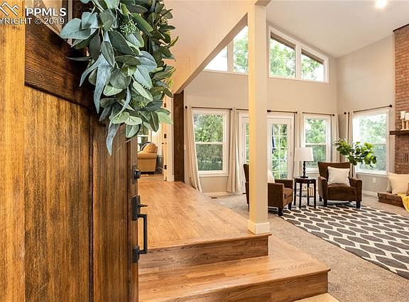 This home is nestled up to Cheyenne Mountain, and masterfully redone with a spa like master bathroom, new kitchen with granite counter tops, new flooring, its truly a must see. The lot is carefully placed with mature beautiful trees surrounding this modern farmhouse style home.