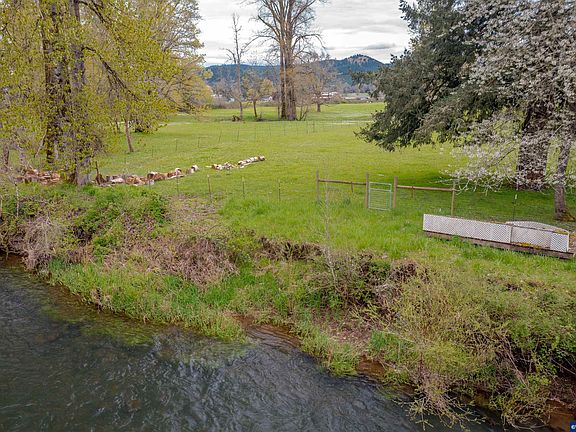 Discover your dream mini-farm! This enchanting 3 bed, 2 bath home, 1512 sqft of comfortable living with a great floor plan! Two living rooms and a master suite with vaulted ceilings, a walk-in closet, and a soaker tub. The property shines with outdoor amenities: river frontage, fully fenced & cross fenced, a barn with stalls & hay storage, 2 chicken coops, a detached garage/shop with loft, and a flourishing garden with raised beds.