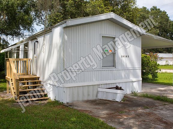 Large 2 bed 1 bath mobile home on an oversized private corner lot. Large carport with a spacious yard, with a new deck. Open floor plan with ample storage space. Not in a mobile home park, no age restriction or HOA. New refrigerator! oven, washer and dryer included. Central Air & Heat. The home comes with a new refrigerator, oven, washer, and dryer, and is equipped with central air and heating. Conveniently located with easy access to Highways 301 and 39, as well as downtown Zephyrhills. You'll be close to shopping, stores, doctors, and hospitals. There is no application fee. Call today for more information and to schedule a showing! Brokered and advertised by John J. Povlitz III at Jerome Property Management LLC. Call for more information. 12 month lease: First,Security Deposit