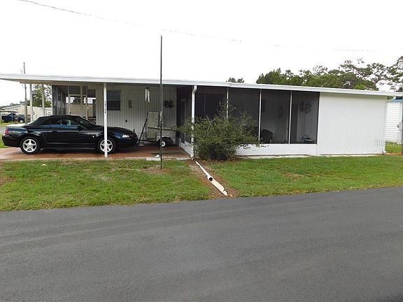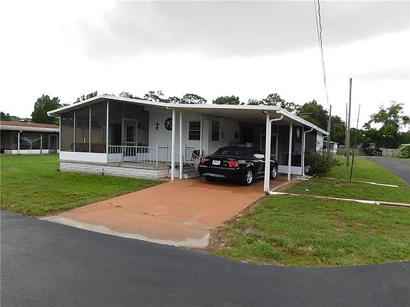 Pack your bags and come enjoy the Florida sunshine this winter. Ready for a pet friendly home in a 55+ community where you OWN your LAND with a low HOA fee of $320 per year? Hillcrest Estates is not to be missed. This well maintained double wide 2br/2ba offers laminate flooring, open kitchen, built-ins in dining room, cozy living room, Florida room, and screened lanai area. Home has many upgrades and a desirable OPEN FLOOR PLAN that flows perfectly throughout. This furnished home features updated kitchen cabinets, window treatments, open floor plan, breakfast bar in kitchen, central AC/heating system, work shop, laundry off Florida room, which includes washer/dryer, and extra storage. Appliances are electric. The master bedroom has laminate flooring, ceiling fan, and storage. The master bath offers step-in shower and plenty of storage. Bedroom #2 offers storage and large closet. Home is on public water and septic. Home also has large side Florida room (16'x11'), additional front screen room (8'x9'), Metal storage building (9'x11') and large corner lot. This excellent home is conveniently located near restaurants, shopping, and medical facilities. Call today for showing.