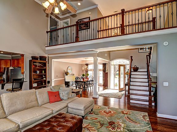 Beautiful waterfront home located on 1.20 acres! Waterfront cove lot w/ floating dock. Enjoy the koi pond, mature landscaping, & lake views on the large patio w/ pergola, screened in porch, or the upper deck! Finished walk out basement w/ rec room, bed & full bath, & additional room. Large bonus over garage. Nice open floor plan for easy indoor entertaining! 2 Story Great room features cathedral ceilings & a gas log fp. Gleaming hardwoods throughout main. Garage space for 4 cars! A must see!