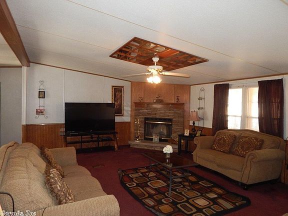 Large double wide mobile home on 6.5 acres in Gurdon, Arkansas. This home features 3 bed and 2 bath with breakfast bar in kitchen open to separate dinning area and living room featuring beautiful fireplace with electric insert. Home has new hot water heater and very spacious bedrooms. 6.5 acres is mainly cleared pasture land with some timber to the back of the property. This home is priced to sell.