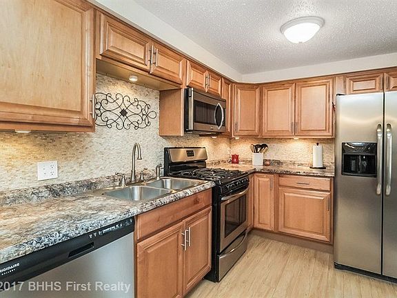 Totally updated 2 bedroom, 1.5 bath ranch with finished basement at an affordable price! All new (in 2014) Kitchen, baths, stainless steel appliances, roof, trim and much more. Finished room in basement can be non-conforming bedroom, den, playroom or office. Large room on main floor off the kitchen could be playroom or office area. 2 car tandem garage sufficient for 2 mid to small sized cars, quiet neighborhood close to shopping and freeway access. Fenced yard with large storage shed in back.