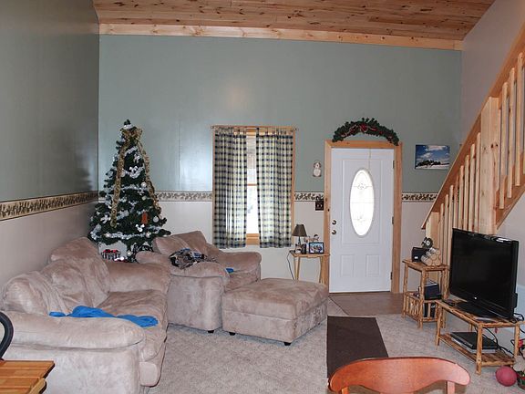 Snowmobiler's dream. Two bedroom year-round or seasonal home located directly on the snowmobile trail. The first floor's open floorplan allows for entertaining with no partitions between the kitchen, dining area and living room. Pine cathedral ceilings above the living room continue into a lofted second level bedroom. The home is heated with a propane furnace in the crawl space and a secondary propane wall heater.