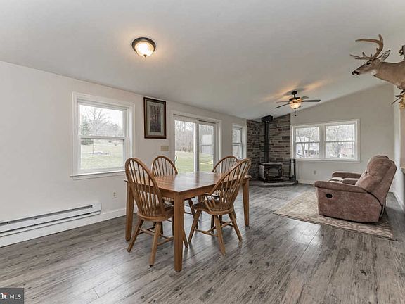 Peace, privacy, and space are the highlights of this gorgeous single-family home, perfectly positioned on a sprawling 1.9-acre lot. Find pleasure in a stone facade and a delightful front porch, which set the scene for this impressive residence offering a host of must-have features awaiting inside. In the evenings, you can gather with friends in the light-filled living room, complete with large windows, on-trend flooring, and a wood-burning fireplace. Preparing meals will be a joyful experience in the generous, eat-in kitchen that provides quality appliances, a dishwasher, and an abundance of wooden cabinetry. The living space equipped with ceiling fans extends to the finished basement and has the potential to be adapted to suit your needs. All three bedrooms are well-sized, including the second-floor master and full bath, while a second full bath services the rest of the home. Lush, established gardens, a generously-sized lot, and a two-car garage with an additional carport, are some of the extra features on offer. This is a chance to live the laid-back Pennsburg lifestyle you have been dreaming of. Come treat yourself to a tour before it is gone for good!