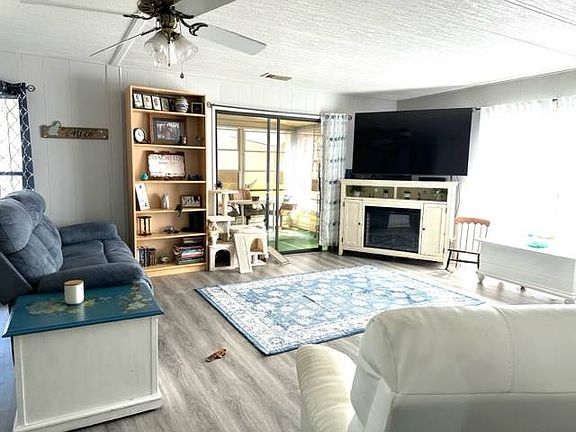 Just listed this charming 2 bedroom 2 bath home is located in Colony Cove, the award winning 55+ community located in Ellenton Fl. Enjoy one of the 6 pools. Take a walk down to the fishing pier. This community has it all. What a great outdoor living area. Nice screened in carport with sliding windows, plus it is air conditioned. Step inside to the spacious open concept of the dinning and living room areas. Just off the dining area you will enjoy the quaint kitchen, with plenty of cabinets. The guest bedroom offers a large closet. A very nice bath is located down the hall, with updated vanity. Next the master bedroom is very large with his and her closets. The master bathroom offers double sinks plus a nice step in shower. Outside you have a laundry room with washer and dryer an a utility sink. For the man of the house a very large shed out back, large enough to hold all your necessary tools and gadgets. This home has new flooring and sub-flooring Plus new vapor barrier all replaced in 2022. All listing information is deemed reliable but not guaranteed and should be independently verified through personal inspection by appropriate professionals. Integrity Mobile Home Sales cannot guarantee or warrant the accuracy of this information, measurements or condition of any property. Measurements are approximate. Lot rent is subject to change.