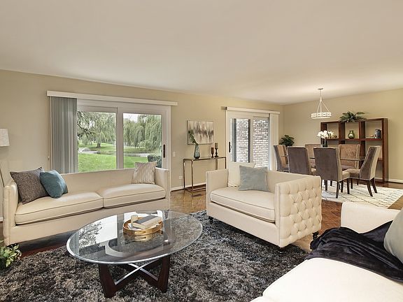 WOW! Finally--one of the largest (2,655 square feet) end-unit townhomes in popular Mission Hills boasting a PREMIER location and updated to perfection including all new Pella windows in 2017! Enjoy spectacular views of wonderful lush grounds and the tranquil fountain-filled pond making it feel like you're on a vacation 24-7! Step into the gracious foyer with pretty turned staircase leading to both the upper and lower levels. Enter the extra-large living and dining rooms where walls have been removed creating a wonderful open 'city-chic' look; both rooms can relish the warmth of the inviting brick fireplace and the party can continue out through two sets of glass doors leading to the big 25' aggregate patio perfect for relaxing and entertaining alike. The all-white kitchen features striking granite counters, a planning area, updated appliances, walk-in butler's serving area with additional storage pantry and a roomy eating area. Also on the main level is a spacious library/family room complete with floor-to-ceiling entertainment center. There are three bedrooms located on the upper level; a fourth bedroom/office is located in the lower level with a full bath just steps away. All sparkling baths have been updated and the master bedroom suite, with two generous closets including a walk-in, has a luxurious skylit bath with oversized glass-enclosed steam shower with marble bench and dual vanities. Two bedrooms including the master have access to a private terrace with fantastic vistas of adjoining grounds & pond. The finished lower level, with separate furnace, features a large rec room with built-in mirrored wet bar & wine rack, 4th bedroom, full bath, walk-in cedar closet and storage galore. The laundry room has newer Maytag front-loading washer and dryer. Freshly painted throughout, there is attractive hardwood flooring in much of the main level & brand new carpeting on the stairs and upper level. Convenient adjustable "Elfa" closet organizers are throughout almost the entire home. The 2-car garage, with longer apron than many, allows 2 additional parking spaces and there is nearby guest parking, too. The well-managed HOA "T-4" townhome association has proudly kept their assessment one of the lowest in the community and covers the roof & exterior maintenance, cable, landscaping, use of numerous pools and 24 hour gated entrance. Just move in, unpack and enjoy carefree maintenance-free living in a fabulous resort-like setting!