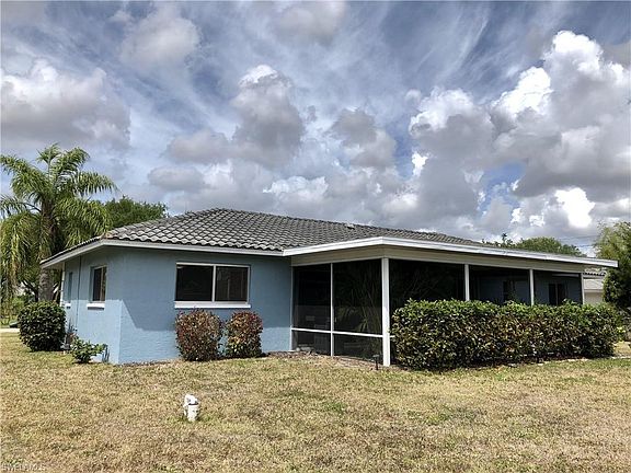 Charming single family home with a brand new AC system and a 2 car garage! Amazing location just 10 minutes to Cape Coral Yacht Club area, and 20 minutes to downtown Ft. Myers. This home has a very generously sized screened lanai overlooking a spacious backyard. Freshly painted interior and freshly cleaned carpets. Master bedroom has an en-suite bathroom with tub, as well as walk in closet. Versatile floor plan with lots of light, windows, and beautiful archways.