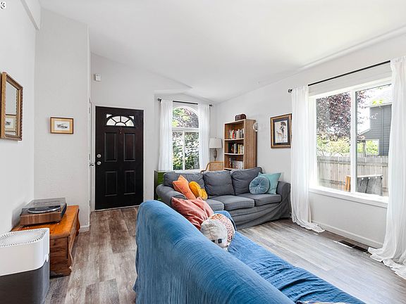 Modern Lents Single-Level Home. This one has everything you need. Two car garage. Spacious .16 acre lot. Three bedrooms, two full baths. Vaulted living room with oversized windows. Open kitchen with skylight. Dining room with deck access. Owners suite with walk-in closet and double glass pane doors. Fenced yard with garden and coop area. Click the virtual tour link for a 3D home tour and floorplan! [Home Energy Score = 5. HES Report at https://rpt.greenbuildingregistry.com/hes/OR10113350]