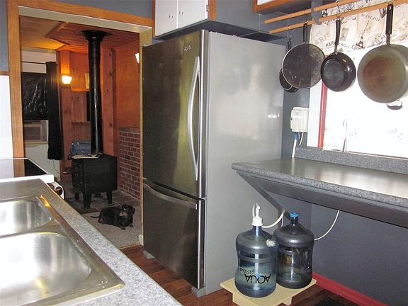 Cream puff! Darling home on large lot with garden space, private patio, an lots of fruit trees (cherry, plum, etc)! UPDATED KITCHEN AND BATHROOM - large JACUZZI TUB! Laminate flooring in kitchen and one bedroom; it's also under the carpet (not tacked down) in the living room. Newer VINYL windows and VINYL siding! THREE sheds: A Large shed w/wood storage addition and private drive up front, another shed for yard equipment, and a third shed for well equipment. Newer well pump and bladder. Built-in safe! Fenced yard. Wood-burning stove. VERY inexpensive utilities!! Average of about $80-$85 electric; NO water or gas bill! Sewer $62/month.
