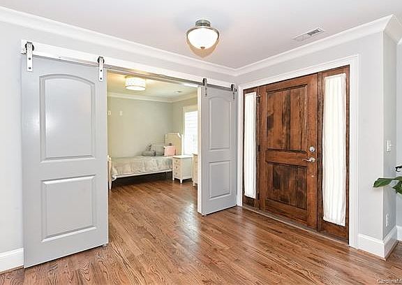 Welcome home! In the sweet-spot of Charlotte with shopping, entertainment, and the best schools, this custom, completely remodeled home boasts two master bedrooms and an open concept design. Upgraded kitchen with quartz counter tops, gas top stove w/griddle, large island and stainless steel appliances. Vaulted ceilings create sense of elegance. Main level master and living room lead to the back deck overlooking a private back yard. Hardwood floors throughout main level, with custom barn doors leading to office/library/flex room. Custom wood shutters. Main master bath has impressive walk in, seamless shower with duel shower heads, separate sinks, and California style closet. Walk out basement includes second master with fireplace and bathroom, two large bedrooms, full bath, a flex room that opens to back yard, and drop zone entry from two car garage. Completely renovated in 2018: new plumbing, electric, HVAC, tankless water heater, windows, roof, and RainBird irrigation system.