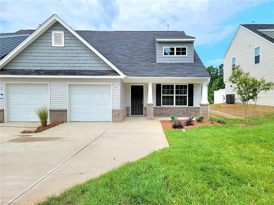 NEW NEIGHBORHOOD - Villas at Strawberry Creek by Windsor Homes! INDIANA floorplan (end unit) with Primary Bedroom on main. Kitchen has grey cabinets, ceramic tile backsplash, blanco matrix quartz countertops and vented gas range. Luxury Vinyl Plank flooring throughout main. Two Bedrooms, Loft and Finished Storage/Office room upstairs. One-Car Garage, Patio with Storage Building. Walking distance to Proehlific Park Sports Center, minutes from Battleground and New Garden shopping, parks and highway access. Lot 48 is under construction. Call/text Kate for an appointment to visit. Photos and virtual tour are representative of floorplan, not decorator selections.