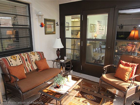 This home is located in Thunderbird Hill II and has been beautifully updated and is in immaculate move-in ready condition. It comes totally and tastefully furnished with furniture from Turner Furniture. Walking up to the extended tiled front porch entry, you will notice the nice landscaping and curb appeal. As you step into the large living room, you will love the open feel with neutral colors, high ceilings and beautiful porcelain tiled flooring - a recent upgrade. This floor plan flows nicely to the dining room and kitchen. The kitchen has updated counter tops and sink. Move beyond the dining room to the Florida Room/Family Room for additional living space. Step outside the backdoor to the screened porch with vinyl windows for year round enjoyment. The master bedroom has the same beautiful tile as the main living area and also has a walk-in closet. The master bathroom includes a step-in shower, new vanity and toilet. All interior doors have been replaced and updated to raised panel doors. The roof was replace in 2022 and the AC unit is 4 years old. This community has a low $60/month maintenance fee which includes lawn mowing, trimming, and inground irrigation system. Also included in the fee is the community center, pool and shuffleboard courts. This is an active community with planned activities. The community center, pool and shuffleboard courts are conveniently located across the street.