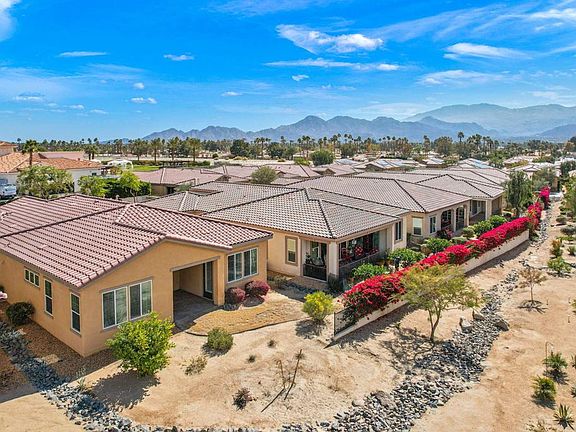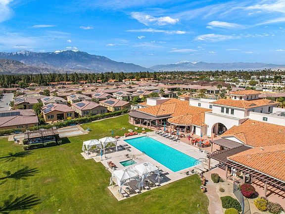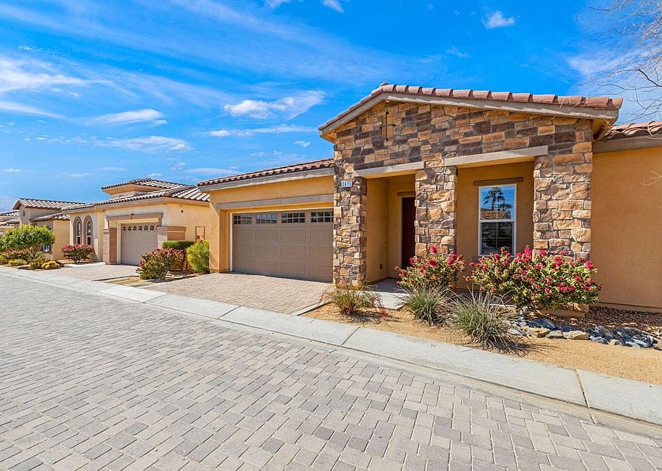 Fabulous desert living! Enjoy it all at Villa Portofino, a 55 or better community on Country Club Drive. 3BD, 2BA and 1,905 SF. Craftmanship is evident throughout. This lovely, detached Palm Desert home is ready for its close-up. Proximity to the front gate + clubhouse are definite selling points. Guest parking too. West & So. facing views work their MAGIC. Modern finishes, high ceilings with open floor plan and natural light throughout. Two patios as well. Chef's kitchen w/ oversized island, handsome cabinetry and flawless finishes make a wonderful impression. Bedrooms enjoy plenty of separation. The primary suite features direct patio access, overlooking green belt, and spa-like bath with dual sinks, separate tub and shower, plus walk-in closet. BD 2 is a spacious Guest Room next to Bath in separate hallway. BR 3 can also serve as office/hobby room. Laundry room, two-car garage and OWNED SOLAR. The 30,000 SF Clubhouse opens to a resort-style pool + spa. Bistro, fitness center, and movie theater. This club's social calendar is a busy one. HOA fees cover many things including twice-a-year window washing, roof + exterior paint maintenance, landscape maintenance, trash service, exterior pest control, Internet / cable TV. Villa Portofino is a short hop from Bristol Farms, Albertson's, Eisenhower Health, El Paseo's dining + shopping, and the best of the Palm Desert, Rancho Mirage, Indian Wells.