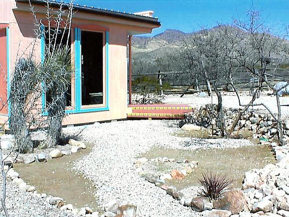Beautiful views of Huachuca Mtns,the panorama and sunsets. A charmingly quaint casita with installed windows from an old saloon in Idaho. It is living off the grid...solar, propane, a water catchment with cistern that maintain the necessities. A 229 sq foot equipment maintenance storage bldg also resides. A yurt pad also exists and the yurt is included with the property. All furnishings included too !!