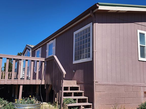 Live on directly on Route 66 & own two homes on over 2 1/2 acres . This property features the main house which is a 1852 ft. manufactured house and the original 1970s, 1Br/1BA, 624 ft. home that can be refurbished & used as a guest house, a workshop, storage, the possibilities are endless. The main home has a large kitchen, loads of counter space and cabinetry. This is a split floor plan for privacy. This property is served by a private water company, so no need to haul water, home also has electricity and propane. This property also features a chicken coop, greenhouse and indoor and outdoor arenas for your horses or other farm animals. Additionally there is a large shipping container that will convey. This property is quiet and serene with expansive views. Don't miss out on this home