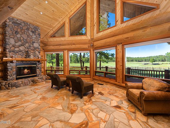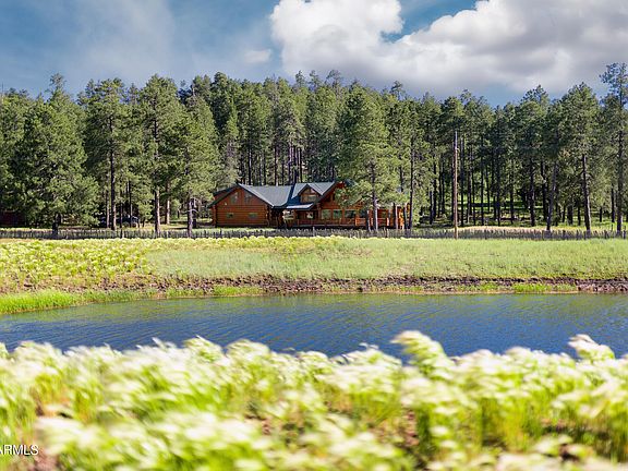 Welcome to your dream hideaway on 8.14 acres, nestled against the serene backdrop of the Coconino National Forest. Prepare to be enchanted by this phenomenal hand-built Pioneer Log Home, a true masterpiece. With a total of 5 beds, 3.5 baths, private guest living quarters, and nearly 5,000 sq ft of living space, this beauty is a haven of luxury. Year-round access, private well, heated roof and backup generator ensure convenience while a private 1/2 acre pond, corrals, and a fully fenced pasture add to the allure. Upgrades include private well and backup generator with full security and camera system for perfect lock and leave. Timbered Bliss Hideaway is 2.5 hours north of Phoenix and 40 min South of Flagstaff in the heart of the Coconino National Forest. Home will be sold FULLY FURNISHED. The property features a private 1800ft well, Smart House Electric Lighting System, Control 4 System with 14 interior & exterior speakers, Generac Backup Generator, and 1,000sf detached guest suite above a generous 2 car garage. Be sure to check under the documents tab for a full list of features, floor plans, info on the builder, and virtual property tour. Truly one of a kind, generational log home/cabin in the heart of Arizona!