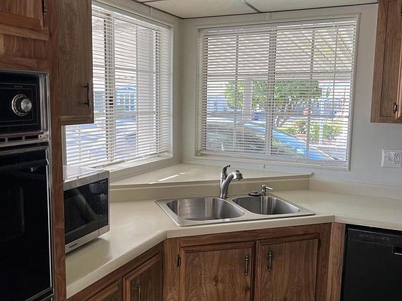 Priced to Sell! This 1987 Silvercrest home is located close to front enterance and the clubhouse. Upon arriving at the home you will notice the recently installed artificial turf, plantings and exterior painting giving the home a beautiful first impression. As you enter the front door you will immediately notice the open airy feel of the home from the cathedral ceilings and the light from all windows. The formal dining room is located off the front livingroom with a lighted china cabinet to display all your personal and treasured pieces. To the left is the galley kitchen, the kitchen sink is situated in the corner of two windows providing nice lighting and a view of the patio and street. Attached to the kitchen is a breakfast area with a sliding door leading to a side patio. The large family room is a cozy area with a fireplace and a built in bookcase. The oversized primary bedrooom is located off the family room with a large double walk in closet, the bathroom is well appointed with a double vanities, garden tub and walk-in shower. The nice sized second bedroom includes a large closet and bathroom with shower. The laundry room includes plenty of shorage. All flooring carpet and vinyl, low flow toilets, 5 burner gas counter cook top was replaced two years ago. The refridgerator was purchased late last year.
