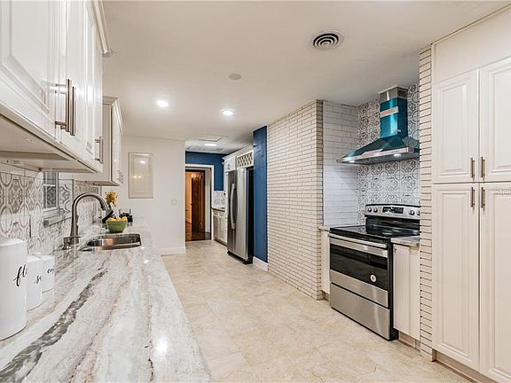LOCATION ALERT! Located right on 5th Ave! A short walk down the street to LOVELY Zephyrhills Historic Down Town District! Huge corner lot w/stunning grandfather oaks safely near the street adorn this Mid-Century Modern, fully renovated home. BEAUTIFUL original red oak parquet flooring has been restored in all bedrooms & main hall. Lots of Mid-Century characteristic birch wood closets, trim & some closets lined w/cedar. Also bringing the outside in, over-sized family/dining combo off the kitchen w/soaring wood beamed ceilings & high windows. MASSIVE KITCHEN, all brand new! Stunning cabinets and HIGH GRADE GRANITE counters with too many details to tell. Living room w/built in wood burning fireplace & built in cabinets. PERGO XP- Extreme Performance Laminate. Whole house fan. Freshly remodeled Master AND hall baths also have HIGH GRADE GRANITE & newly tiled showers w/mosaic accents. BONUS!! Bonus room 12 x 19, has it's own exterior entrance and located off the screened back patio w/concrete floors, big chalk board, could make a great big 4th BR, office, game room or mother -in- law. Screened back patio area w/real hooded exhaust in outdoor kitchen area with half bath nearby in garage. Room for a pool! OVER-SIZED GARAGE with half bath, wash tub, large laundry area, 2 car w/opener and workshop area. BR 3 also has locking exterior entrance and and interior door. NEW: ROOF, AC, WATER HEATER, CABINETS, FLOORING, WINDOWS, PAINT, UPDATED ELECTRIC and more. Copper plumbing. Great community w/festivals & family fun! If you love the beauty of older homes made right, new finishes, Olde World charming locations, and NO HOA, this is your house!