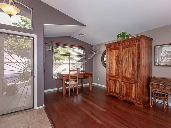 Don't miss this very well-kept, move-in ready, single-owner home. The front entrance opens to an airy living/dining room & leads to an open kitchen w/ functional island. Rich wood flooring extends throughout the home for a refined sophistication. The great room's cozy fireplace is a focal point & adds warmth to the family-centric space. A spacious master opens to the master bath, & extended walk-in closet. A Jack/Jill hall bathroom w/ updated mirrors & shelving provides access to both guest bedrooms or visitors while entertaining. A generous rear covered patio leads to a full brick rear yard w/ fire pit & built-in BBQ & established landscape. And don't miss the 4ft extended garage! Within walking distance of the community park, easy access to off-roading, nearby restaurants...Welcome Home!
