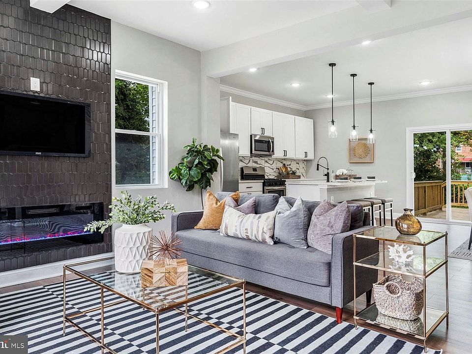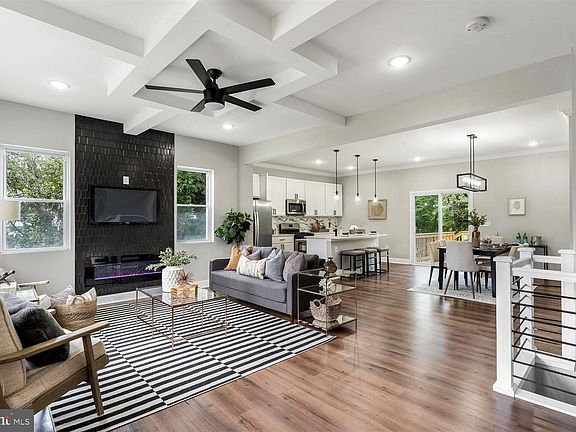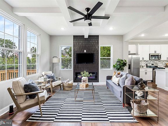 Another stunning renovation by Building Blocks ! This porch front charmer with modern open floor plan boasts 5 bedrooms, 4 bathrooms 3000+ square feet of finished living space that includes beautiful hardwood floors throughout, 9- foot trey ceilings, recess lighting & crown molding. Chefs kitchen feature 42-inch soft close cabinets for lots of storage, breakfast bar, quartz counter-tops w/ custom back-splash, & 5 burner stove w/ over the range microwave. Upper level has 2nd floor laundry, Spacious master suite w/ walk-in closet, dual vanity, custom tile in shower . This home has been updated with fully permitted HVAC, electric and plumbing work. Indoor/outdoor entertaining will be a breeze with finished basement, nice deck & large fenced rear yard. Enjoy your low maintenance exterior. Close to Golf Course, Shopping Mall, Baltimore Zoo, SSA, Parks i695 i83 & i70