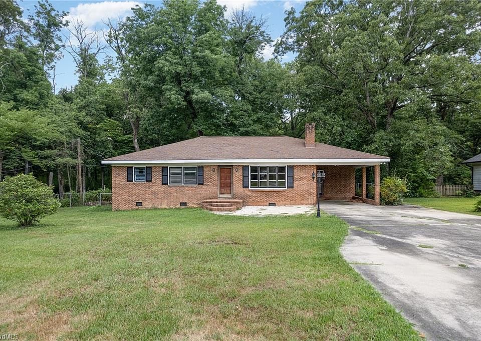 Discover the charm of this diamond in the rough brick ranch nestled on a spacious .9-acre lot, offering endless potential. Step into a formal living room featuring a classic brick fireplace and large windows, complemented by built-in cabinets and shelves. The expansive fireside den invites relaxation. Wood floors grace the bedrooms, while tile adorns the bathrooms. Outside, a slate patio and sidewalk lead to a fenced-in backyard, complete with a detached oversized garage (24' x 30') with one garage door, and no driveway to the garage in the backyard. Oversized driveway to the front entry carport. Sold as is, this home awaits your personal touch and offers convenient access to shopping, dining, highways, and parks. Sold As Is.