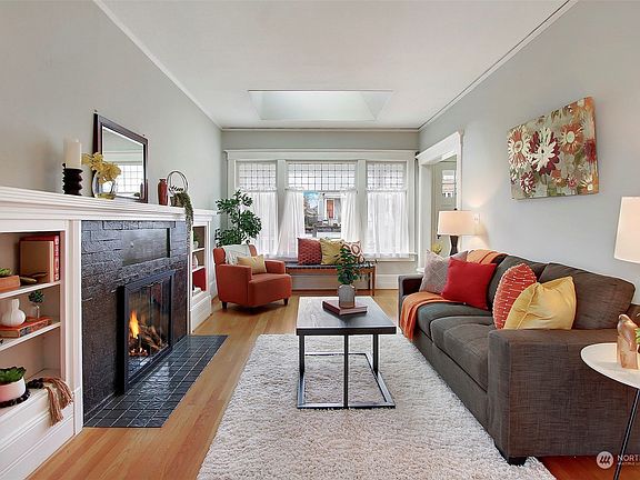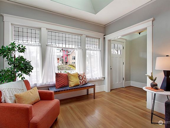Nestled on a tree-lined street in the heart of Wallingford, this Craftsman classic awaits you.  You’ll discover period charm at every turn—from the rocking chair front porch to genuine hardwoods, box beam ceilings, and leaded glass windows. Gather around the fireside in the sky-lit living room, or host parties in the adjacent dining area with easy access to the cheerful kitchen beyond. Two bedrooms on the main plus a huge rec room and guest room down provide all the right spaces to relax or work from home. Step out for summer BBQs on the back deck overlooking a private patio and garden. Don’t miss the shared garage. Stroll to coffee, dining, parks, trails, Lake Union, and more!