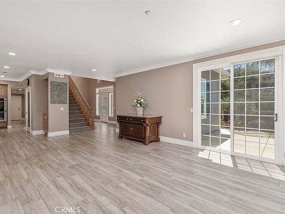 Nestled on a fully fenced 1-acre lot at the end of a quiet cul-de-sac in the heart of Fallbrook, this 4-bedroom, 4-bath, 3,331 sq. ft. home offers scenic views and timeless country charm. Built in 2002, it features dual-pane windows, crown molding in every room, stained glass panels, porcelain tile floors downstairs, a formal living room, formal dining room, and a bright family room with a wood-burning fireplace and 8-ft. sliding door leading outside. The gourmet kitchen boasts granite counters, Bosch appliances, a walk-in pantry, a large center island with pull-out cabinets, a reverse osmosis system, and a whole-house water softener. A spacious downstairs bedroom with a remodeled bath featuring a walk-in shower just steps away provides ideal guest or multi-gen space. Upstairs, each bedroom has its own full bath, with the primary suite showcasing a walk-in closet, remodeled bath with walk-in shower, Jacuzzi tub, and new quartz counters. Outdoor living features beautiful landscaping, two covered patios, a built-in BBQ, and a tranquil backyard ideal for entertaining or relaxing. In addition to the main driveway, the property offers a separate parking area with room for multiple RVs, equipment, toys, horse stalls, or a great space to add an ADU. Additional highlights include a 3.5-car garage, an 8' x 20' storage container with siding to match the house, dual HVAC systems, whole house back up generator, and an electric gated entry—all just 5 minutes from Mission Rd. and the 76, in a prime Fallbrook location known for its wineries, horse trails, orchards, and peaceful lifestyle.