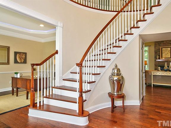 Ideal location. Gorgeous curved staircase greets you in the foyer.Stunning hardwoods and millwork.Large FR features stone fireplace. Gourmet kitchen boasts huge center island w/prep sink, SS appliances and granite countertops.Trey ceiling in DR and office.Huge master bedroom w/separate sitting area,glamour bath includes two walk-in closets and custom shower.Large secondary bedrooms and bonus room.Private deck overlooks rear yard. THREE car garage.NO city tax,3 min to Cary Parkway,5 min to Crossroads