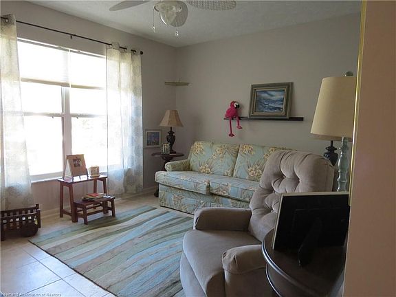 WHAT A GREAT PRICE FOR A GREAT HOUSE. This home has been well maintained, it's spotlessly clean, has a split floor plan, and a bonus room that can be used for a den or office. The air-conditioner was new in March of 2019. The water heater, refrigerator, and irrigation pump were all replaced around 2013. The cathedral ceiling makes the home look and feel much bigger than the square footage shows. It has a huge enclosed lanai that measures 26 x 11 ft. The master bedroom is a nice 14 x 15 ft. with a big walk-in closet and good sized bathroom with a walk-in shower. The home also has beautiful landscaping and a big fountain in the front. You won't want to miss this one. Also note: Two split boards in dining room floor. They were there when seller purchased the house 8 years ago.