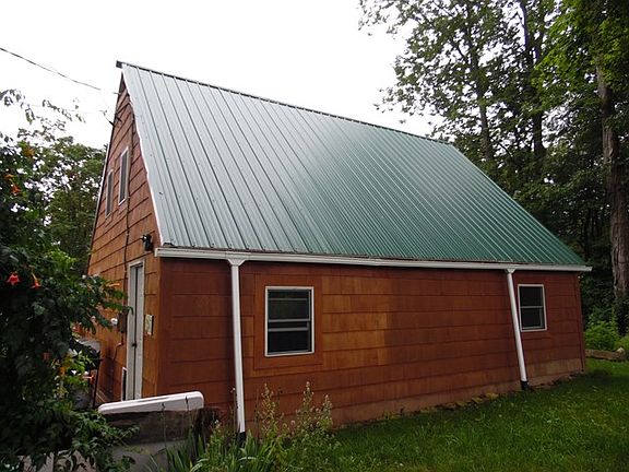 Quaint cedar sided cape cod nestled in the woods/privately set overlooking hillside/valley views with trout stream bordering the property. Located less than a mile off the Cayuga Scenic Byway and 1/4 of a mile to Sheldrake Point public lake access. Newer furnace, hot water heater, septic, well & pressure tank. Hardwood floors through most of the house, first floor bedroom and bath. Unique setting with nice landscaping, garden area and a great deck overlooking a gorge/woods. Would make a great vacation getaway in the heart of the Finger Lakes!