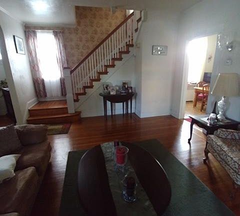 Estate Sale - Home sold strictly AS-IS on a 1/4 acre level lot with a gazebo and parking pad out back. 1st floor features a screened front porch, foyer, living room, formal dining room, sunroom with ceramic floors, breakfast room, galley kitchen, pantry, half bath and a back screened porch. The 2nd floor back 2 bedroom have screened porches, the front 2 bedrooms have ceiling fans and most rooms have hardwood floors. The unfinished full basement has a walk-out into the back yard and is accessible from inside the house.