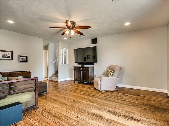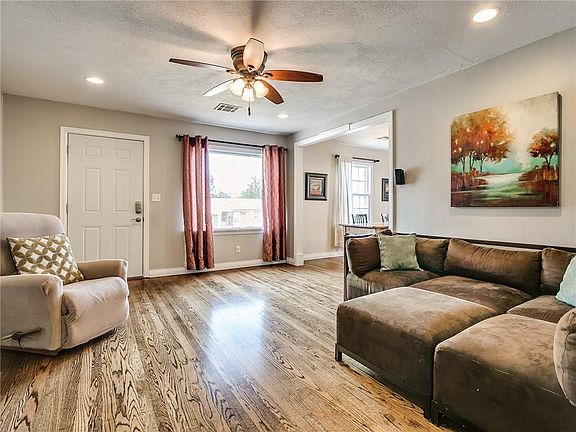 Beautiful remodel! Open floor plan, lots of natural light, concrete counter tops, updated kitchen cabinets, nice breakfast bar, refinished hardwood floors, remodeled master bath, nice walk in closet, canned lights, and more. The large master suite is complete with a nice fireplace, great walk in closet as well as a full master bath! The secondary bedrooms are separate from one another which provides good privacy. The laundry room is bright and spacious. The outdoor covered patio is rounded, huge, and it is perfect for entertaining. The backyard is nice and complete with an outdoor shed. Don't miss the storm shelter in the garage floor. This home is located not far from Will Rogers Park, Aquatic Center and the impressive botanical gardens.