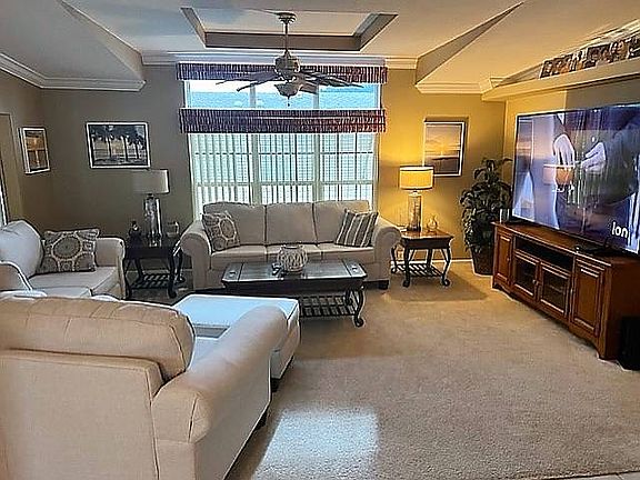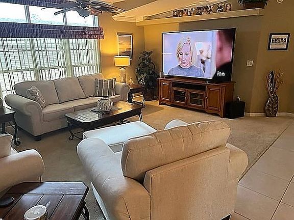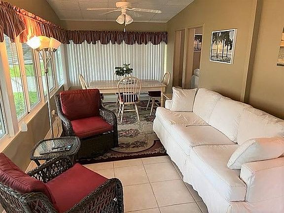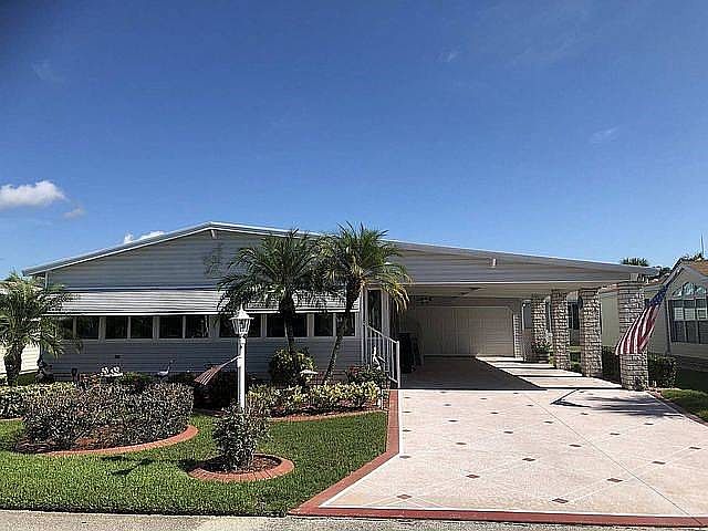 This amazing home offers 1624 SQ. FT. with an additional front Florida Room for a total of 1924 SQ. FT. 2 Br 2 BA and Office or Den, unfurnished, Large master suite with master bath, Nice sized spare bedroom with murphy bed, Open concept spacious kitchen, new dishwasher, Dining room and living room great for entertaining, Separate laundry room, Deep 2 Car Garage is 27 feet deep, Double Covered car carport with new roof, and spacious double driveway and beautiful landscaping, new irrigation pump, new awnings, complete this home. AC is 4 Years old, New Roof.