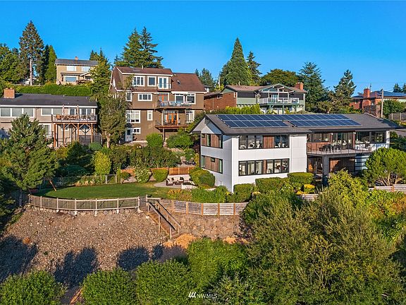 Exquisite Fauntlee Hills modern with sweeping views of the Sound & Olympics! This extraordinarily rare double-lot property is equally impressive inside & out. No detail was spared on the 2014 studs-out remodel featuring dramatic design, a thoughtful layout & custom finishes that combine for a captivating architectural expression. Entertainers will delight in the 3,590 sf open concept floorplan w/vaulted ceilings, chef’s kitchen, multiple indoor/outdoor gathering areas & stunning vistas. Amenities include an impressive primary suite, climate-controlled wine cellar, solar panels, A/C, Trex decks + more! The 2nd tax parcel provides an expansive yard for relaxation & play with even more views. Prepare to marvel at this West Seattle masterpiece!