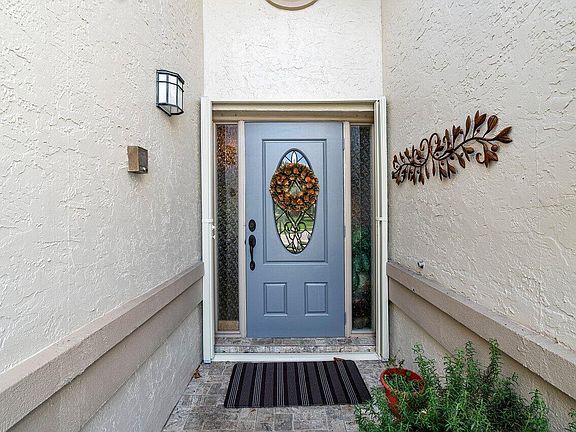 The house features 3 bedrooms, 2 baths, 2 car garage with screened covered patio.Beautiful kitchen with custom built cabinets, granite counter top, backsplash, stainless steel appliances with double oven and cook top. Completely remodeled bathrooms, diagonal tile flooring and upgraded light fixtures. The screened patio with tile flooring. The house complete with ''ACCORDION shutters'' for windstorm protection. and garage with GENERATOR HOOK UP. Newer Air Conditioner & Water Heater. The back yard with Fruit Trees and privacy. This is an Age restricted community (HOPA 55+) credit score 650, no pick up truck or motorcycles. Close to Publix shopping center, restaurants, parks, near turnpike for easy commute. Gated community clubhouse, pool, tennis & shuffleboard.