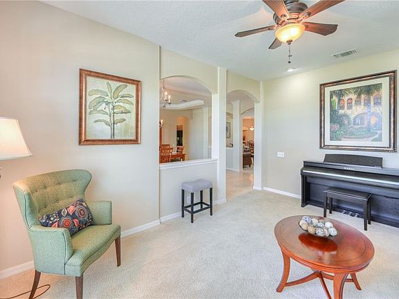 Days on the market do not reflect actual days on the market (off the market from 7/4-9/4). Located in the beautiful gated Carillon Lakes community, this IMMACULATE Sego Model home was built on an oversized .24 acre lot with many extras not found in other Carillon Lakes homes! The moment you walk through the front door, you are greeted with views of the serene conservation area through the 12 foot glass sliding doors. This home has a formal living room and a formal dining room, in addition the the large family room and eat-in breakfast nook. The spacious master bedroom suite occupies one side of the home with nearly 250SF of bedroom space. The master en-suite bath boasts a Jacuzzi tub, separate glassed walk-in shower and double vanity.The walk in-closet enjoys custom built-ins. Located on the other side of the home, you will find two more large bedrooms and full bath. The bonus room is completely separate from the other bedrooms and is ideal as 4th bedroom or large den/office. The kitchen boosts 42" solid wood cabinetry, extra shelving, pantry, breakfast bar and endless countertops. The home amenities include sound proofing in the walls, pest tubes in the walls, gas connection off the back patio, security system, extra attic insulation, laundry room with sink, oversized garage, so much more and plus a new roof end of 2019. Carillon Lakes community amenities include 24 hr guard gate, clubhouse, game room, fitness center, swimming pool, tennis courts, pickle ball courts, playground etc. Your monthly fees, along with all of these amenities, include lawn mowing, basic cable and internet. Make your appointment today for your new home!