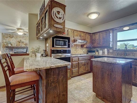 The moment you turn onto your long driveway and gaze upon your creek bottom pasture with towering native pecan trees, you'll feel right at home. The fieldstone and cedar ranch home has been completely remodeled. A master suite was added featuring spacious built-in cabinets, its own HVAC and WH, and stunning views of one of your four large ponds with pasture, oak and pecan trees as far as you can see. The existing home received new flooring throughout, new windows, fixtures, faucets, texture, paint, HVAC and WH. Granite countertops, stone backsplash, an island, and stainless steel appliances were added to the kitchen. Exterior paint, seamless gutters, safe room, well house, a whole-house generator and more have been added since the remodel. The house features an open floor plan and a second bedroom with an ensuite bathroom and walk-in closet. Outside your 160-acres provides plenty of pasture, a large barn with corral for livestock, woods for hunting and four ponds for fishing.