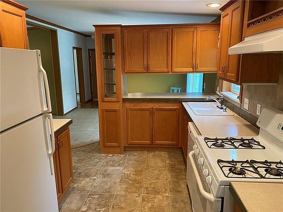 Pleasant 3/2 manufactured ranch located on a paved country road. Nice two car attached garage and enclosed, heated breezeway to house. Oak kitchen. Private Master suite at one end with 2 bedrooms and bath at other. 10 x 11 deck off DR and 9 x 9 covered patio off breezeway. Cement crawlspace. Utility room with w/d and Kinetico water system. Central air. Brand new metal roof! Private wooded backdrop w/deer and wildlife aplenty. Well flow & purity and septic dye tests already done. Triangular lot.