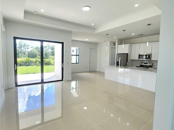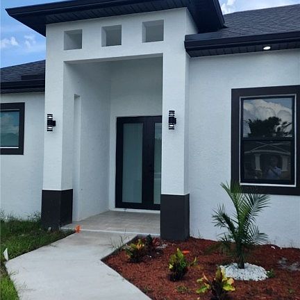 READY TO MOVE IN. Great area in Lehigh Acres. This is a very well thought designed 3 bedrooms plus den and 2.5 bathrooms single family home. Very spacious and high ceilings to make you feel under a lot of freedom. The den is very good in size, and it can be used as a 4th bedroom if needed. The kitchen and bathroom have quartz countertops. Impact windows. Spacious garage for 2 cars. All kitchen appliances included PLUS Dryer and washer inside the house under AC. Laundry room includes an useful and nice laundry tub. Spacious master bedroom with 2 vanities and 2 walking closets. The nice of having an additional half bath door takes you into the huge, tiled lanai area and into the garden with automatic irrigation system included. A 0.25-acre lot gives you space to accommodate a pool in the future. Prewired for security cameras, cable, data and other electronic features. A wood backing frame was left inside the walls in all bedrooms and family room to safely hang the TVs. House has many useful features.